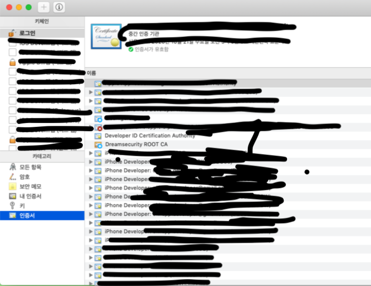 XCode certificate file remove (XCode cerificate 파일 제거)공부방/iOS2019. 10. 21. 14:14