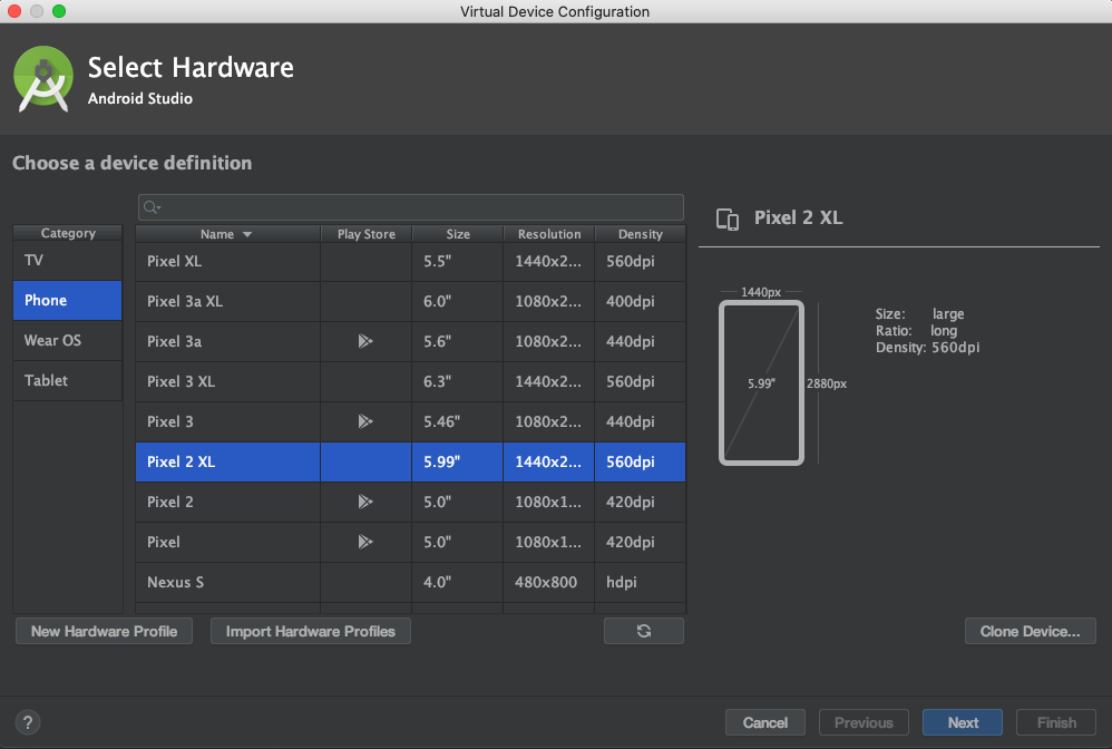 2. 왼쪽 하단에 + Create Virtual Device... 을 눌러보자