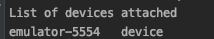 13. 위의 명령어를 입력하면 아래처럼 뜰것이다. emulator-5554가 사용할 디바이스이니 잘 기억해 두자.
