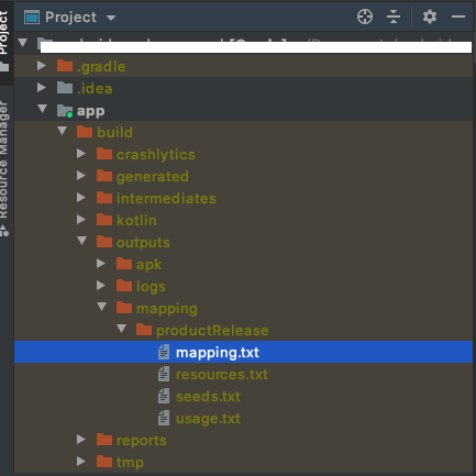 app -> build -> outputs -> mapping -> mapping.txt 파일을 찾아서