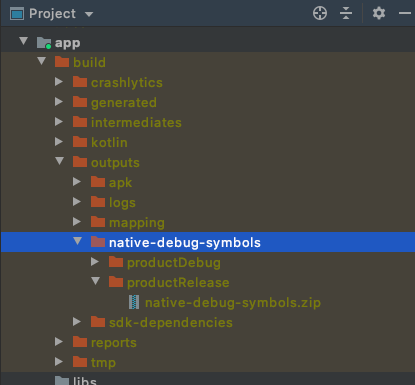 아래와 같이 네이티브 디버그 심볼 파일이 생성이 된 것을 확인할수 있습니다.