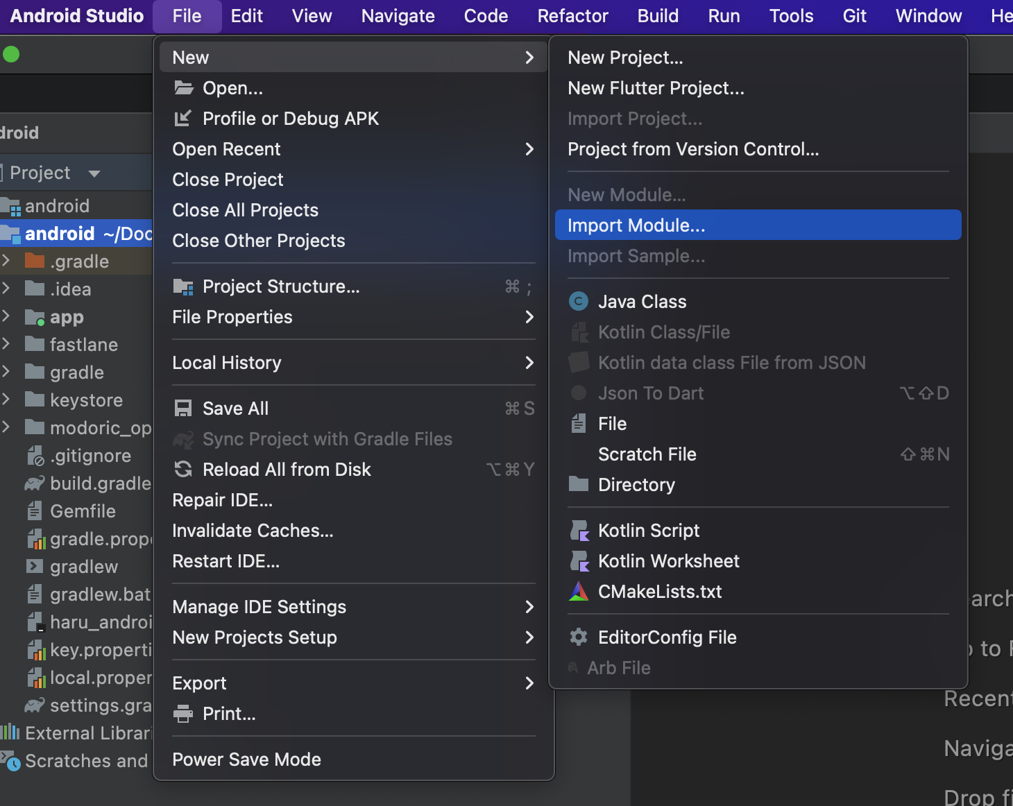 a. 상단 메뉴에서 File -> New -> import Module을 클릭해