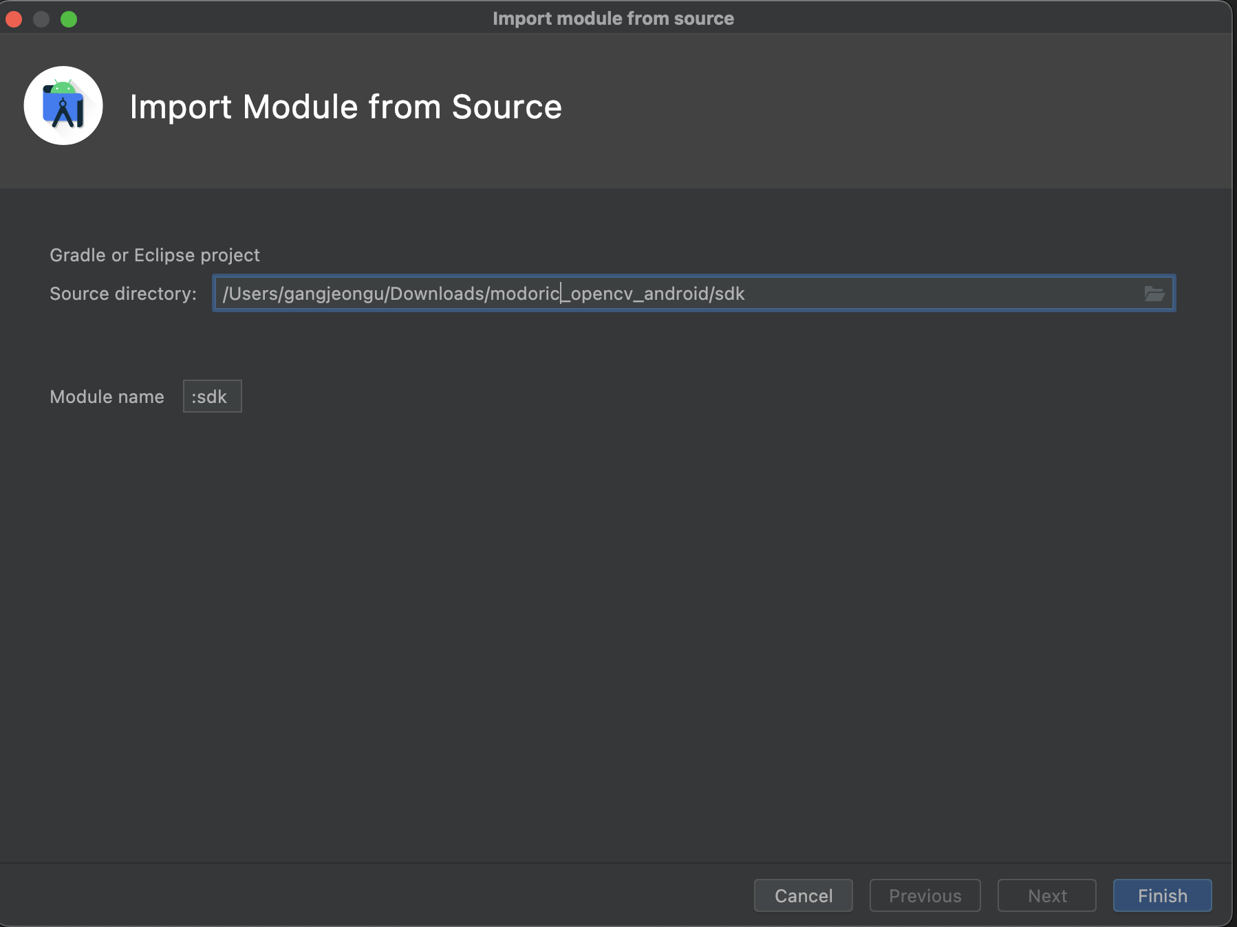 D. Module name은 원하는 이름으로 변경하고 Finish 를 누르면 모듈 추가는 끝이나요.