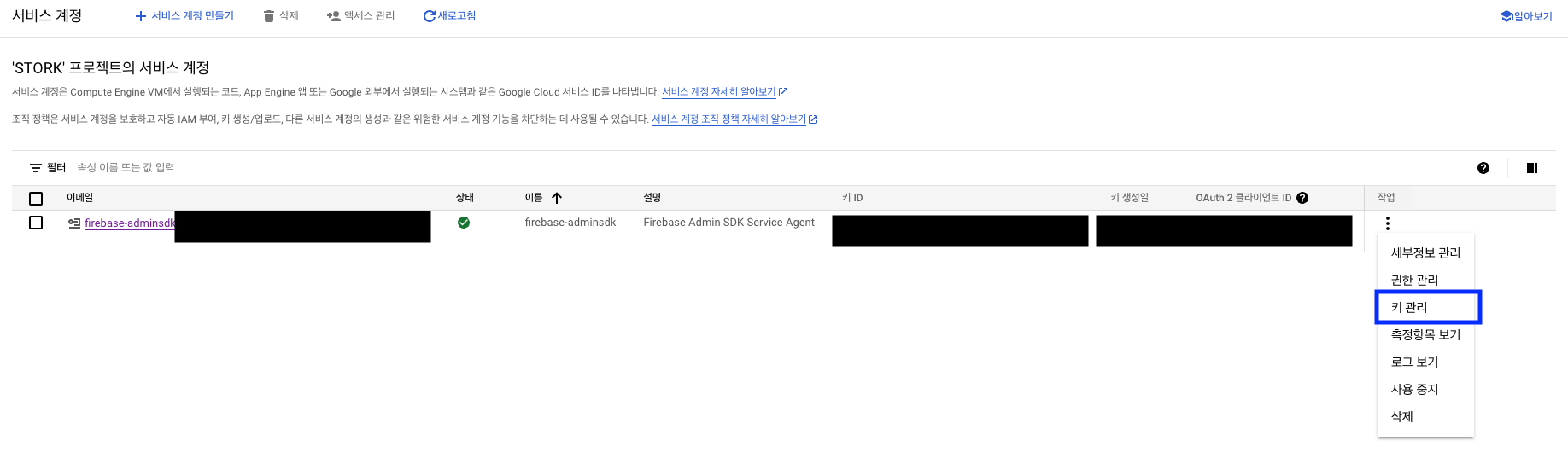 - https://console.cloud.google.com/iam-admin/serviceaccounts 에 들어가면 아래와 같이 화면이 나올거에요.