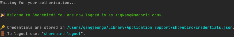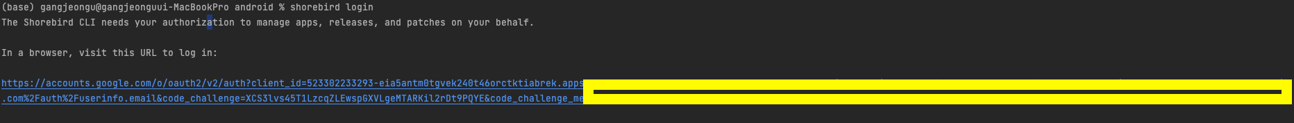 Flutter 프로젝트에서 터미널을 열고, shorebird login 을 입력하면