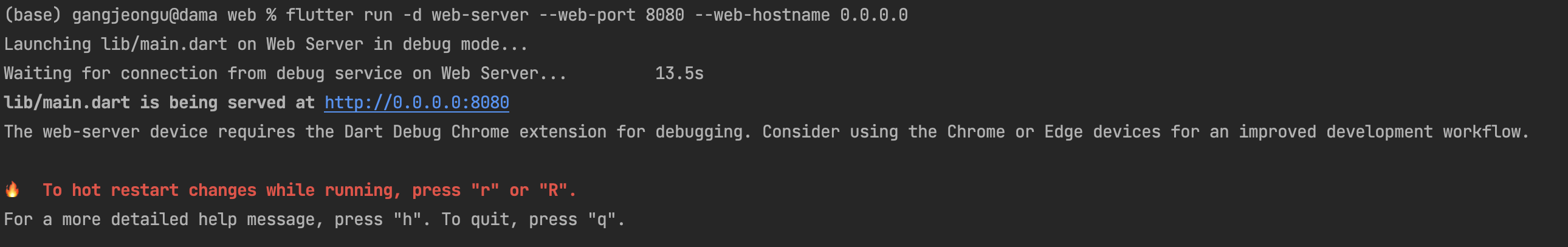 Flutter web localhost 실행 서버 외부에서 접근하는 방법공부방/Flutter2023. 9. 22. 14:59