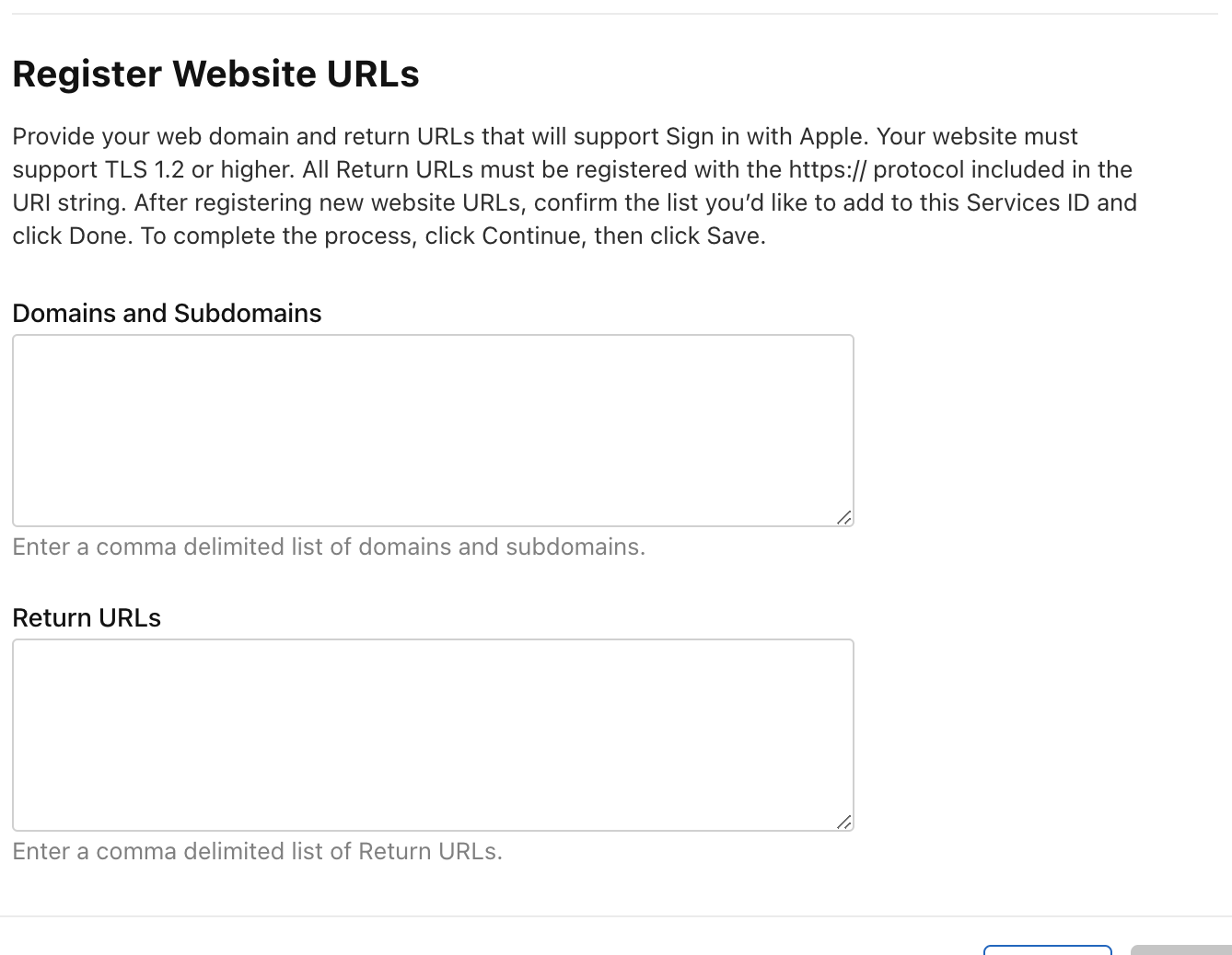5. primary App ID 를 1번 에서 만든 identifier 를 선택 후 Website URLs 제목 옆에 + 버튼 클릭