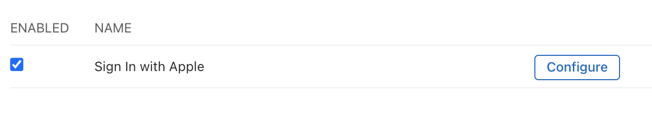 4. Sign In with Apple 을 Enabled 해놓고 Configure 클릭