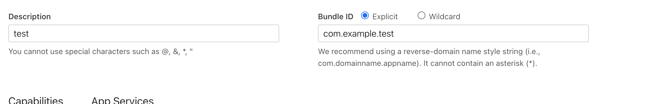 3. 만들려는 App 과 똑같은 bundle id로 기입