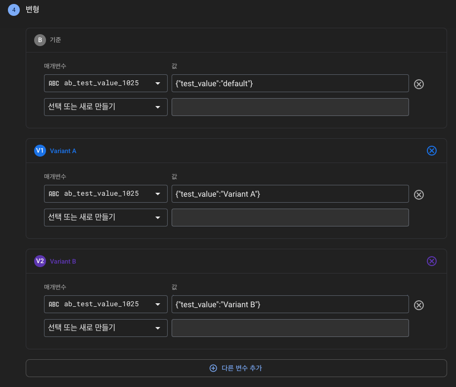 | 4차 | {"test_value":"Variant B"} |