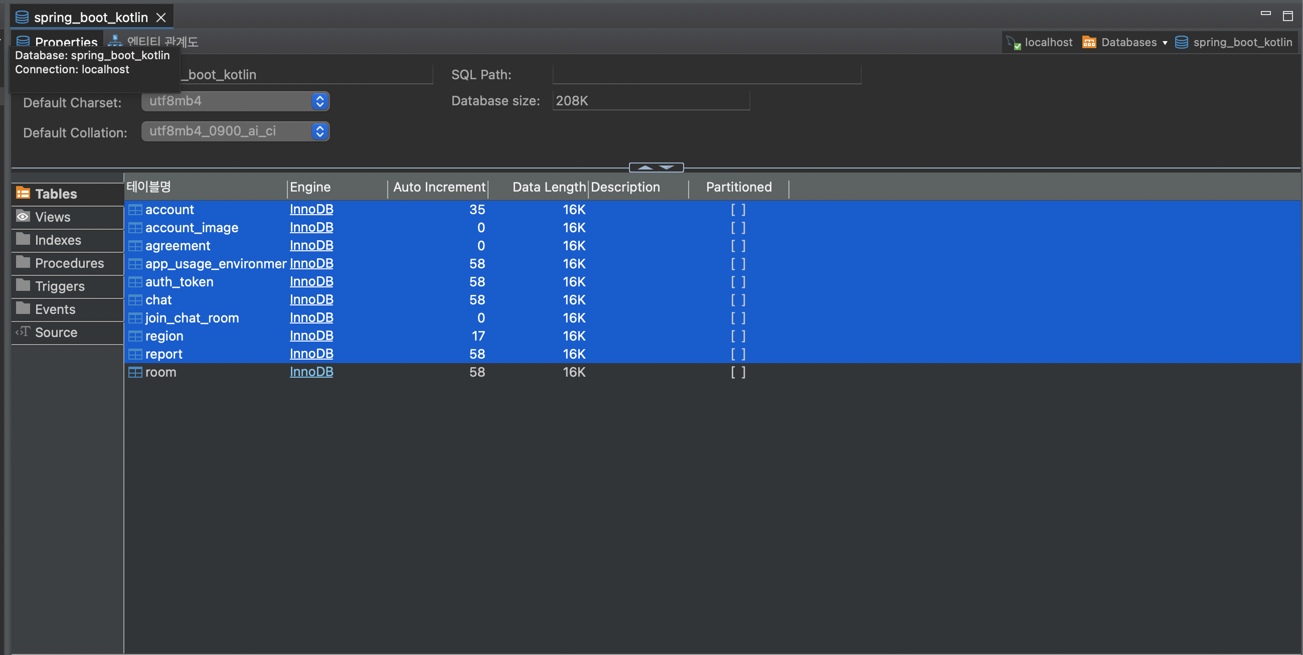 1. dbeaver 프로그램을 실행 후 Database에 연결이 되면 아래와 같은 화면이 나온다.
