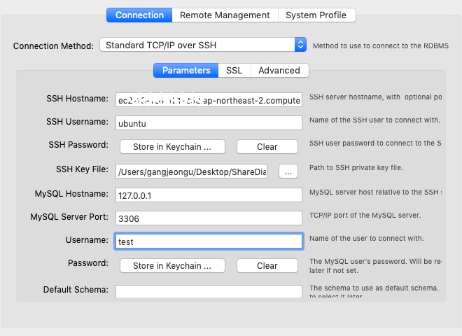 1. SSH Hostname 은 aws public DNS 입력 뒤에 :22 포트 추가