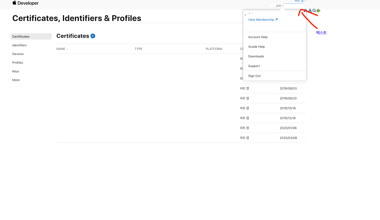 iOS 인증서 및 프로비저닝 프로파일 만들기