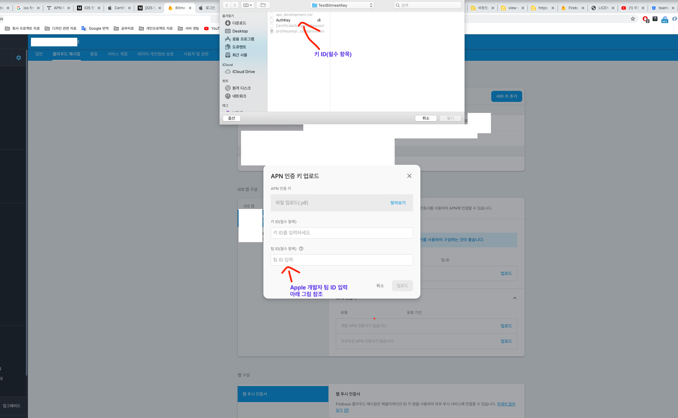 위의 과정을 마치고나서 FireBase Cloud Message Setting 은 아래 처럼 셋팅 하면 된다.