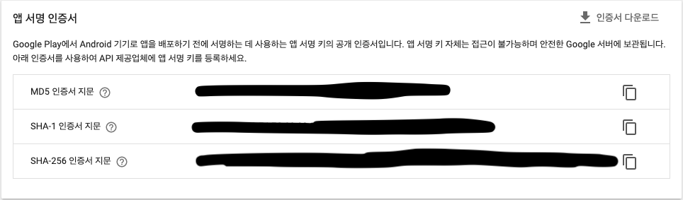 따라서 구글 플레이스토어의 앱서명 인증서 정보를 이용해
