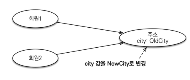- 임베티드 타입 같은 값 타입을 여러 엔티티에서 공유하면 위험함