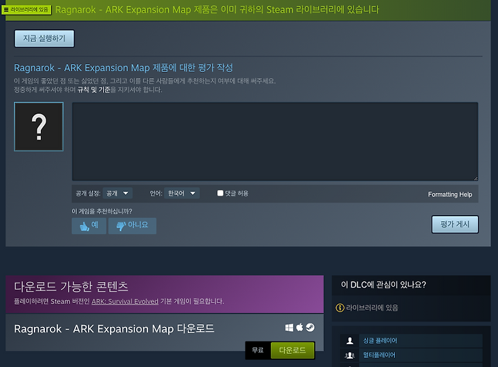 1. 먼저 검색으로 아크 서바이벌을 찾아서 들어가면 아래 같은 화면이 보인다