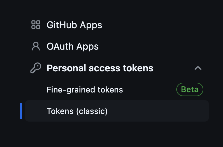 git login -> Settings -> Developer settings -> Personal access tokens -> Tokens(classic) -> Generate new token 클릭!
